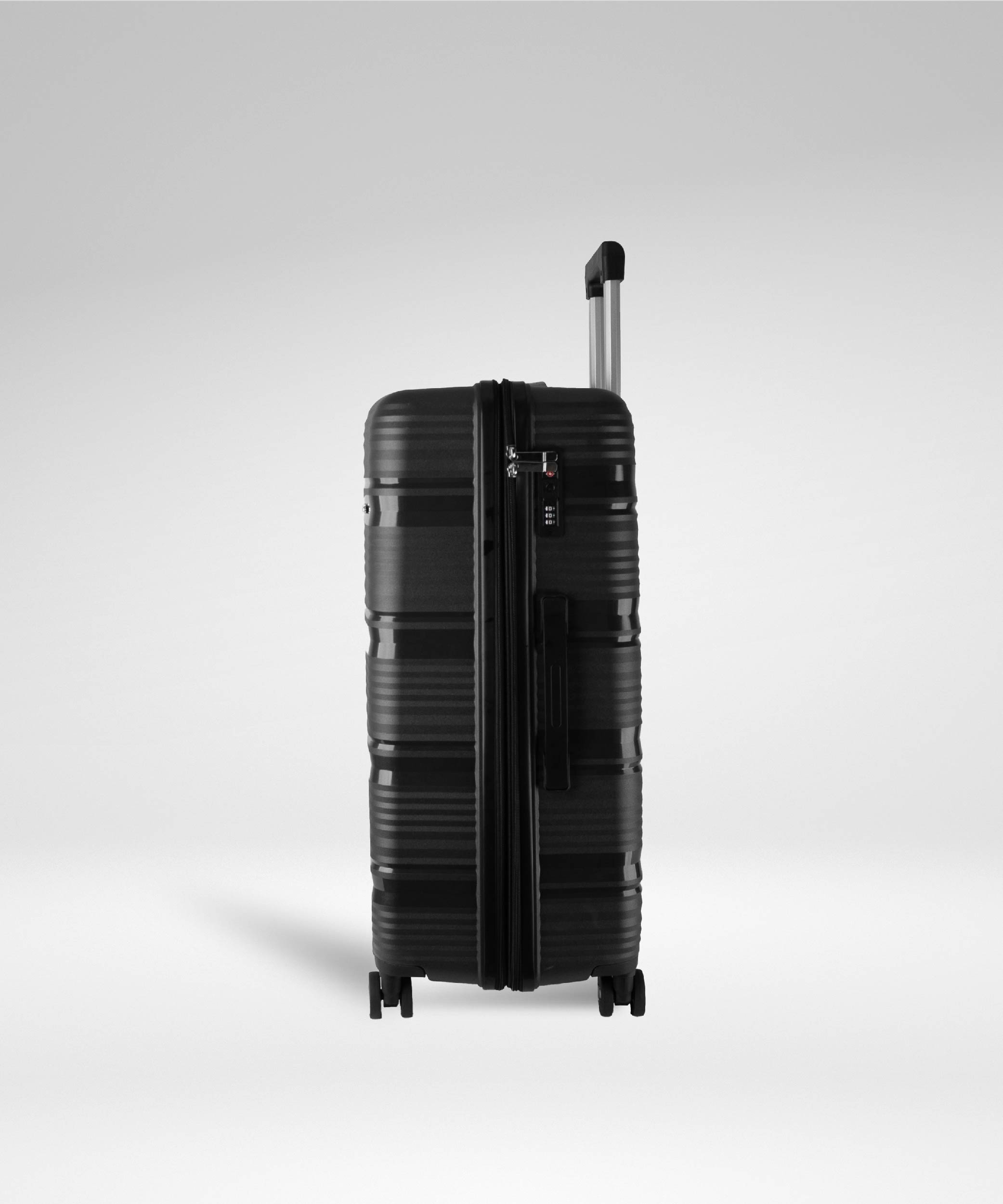 ● Internal push button telescopic trolley handle system with multi-stage locking heights, making even heavy cases much easier to manoeuvre