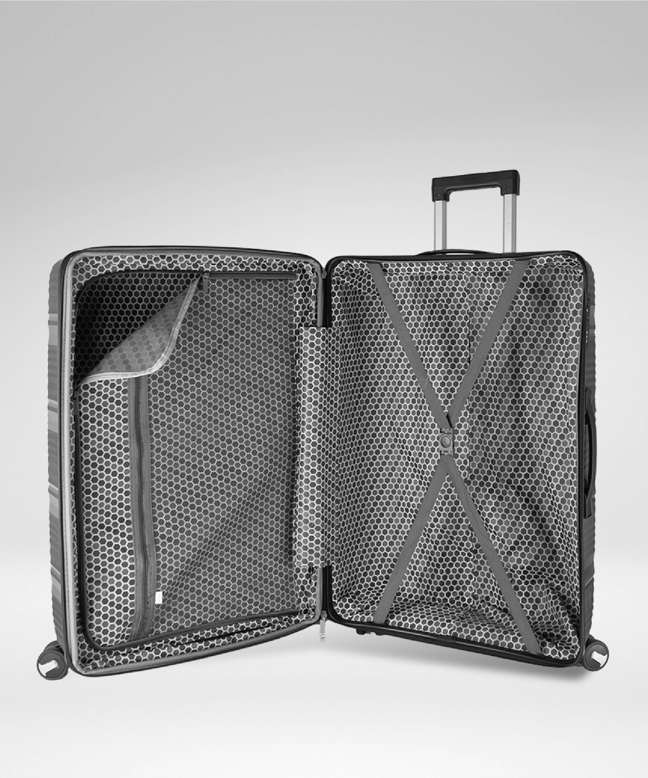 ● 360° Spinner Wheels system for smooth and fluid movement with your luggage. Multi-directional, which provides exceptional mobility, enhancing stability and minimize