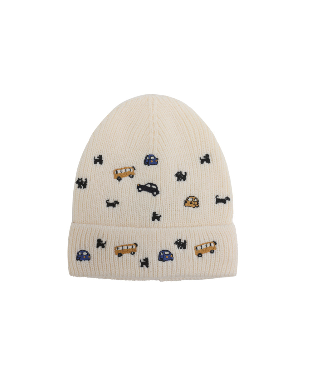 Beanie decorated with fun vehicle and dog patterns for a playful look that keeps children. - Polyester lining - Wind resistant - Soft - Lightweight - Breathable - Durable - Highly insulating