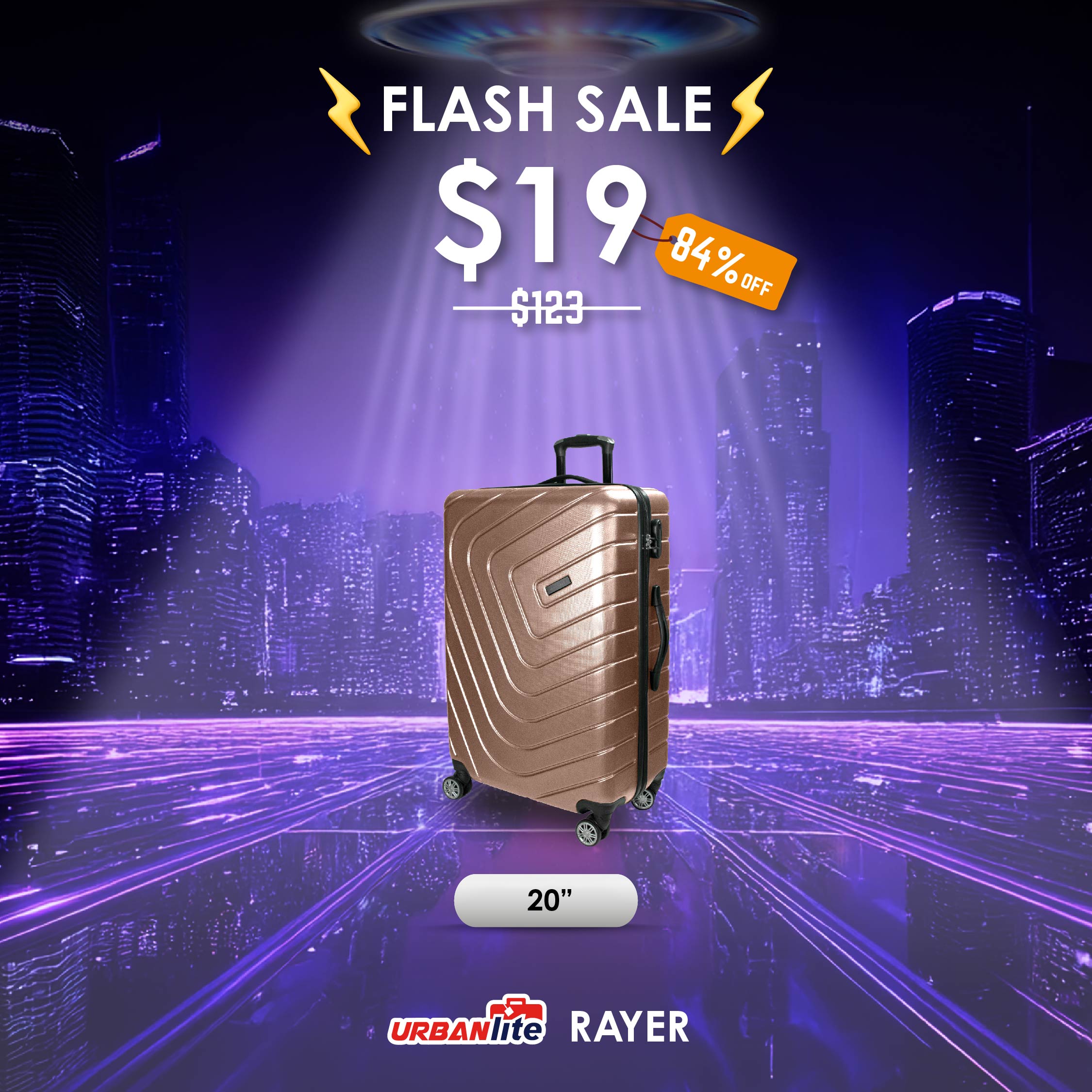 10th Nov, 12pm-4pm: Shocking Sale $19 URBANlite Rayer 20" | 8-Wheel Spinner | Anti-Scratch | Hard Case Luggage