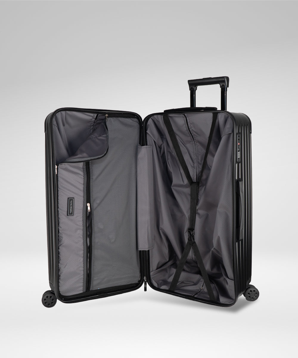 ● 360° Spinner Wheels system for smooth and fluid movement with your luggage. Multi-directional, which provides exceptional mobility, enhancing stability and minimize