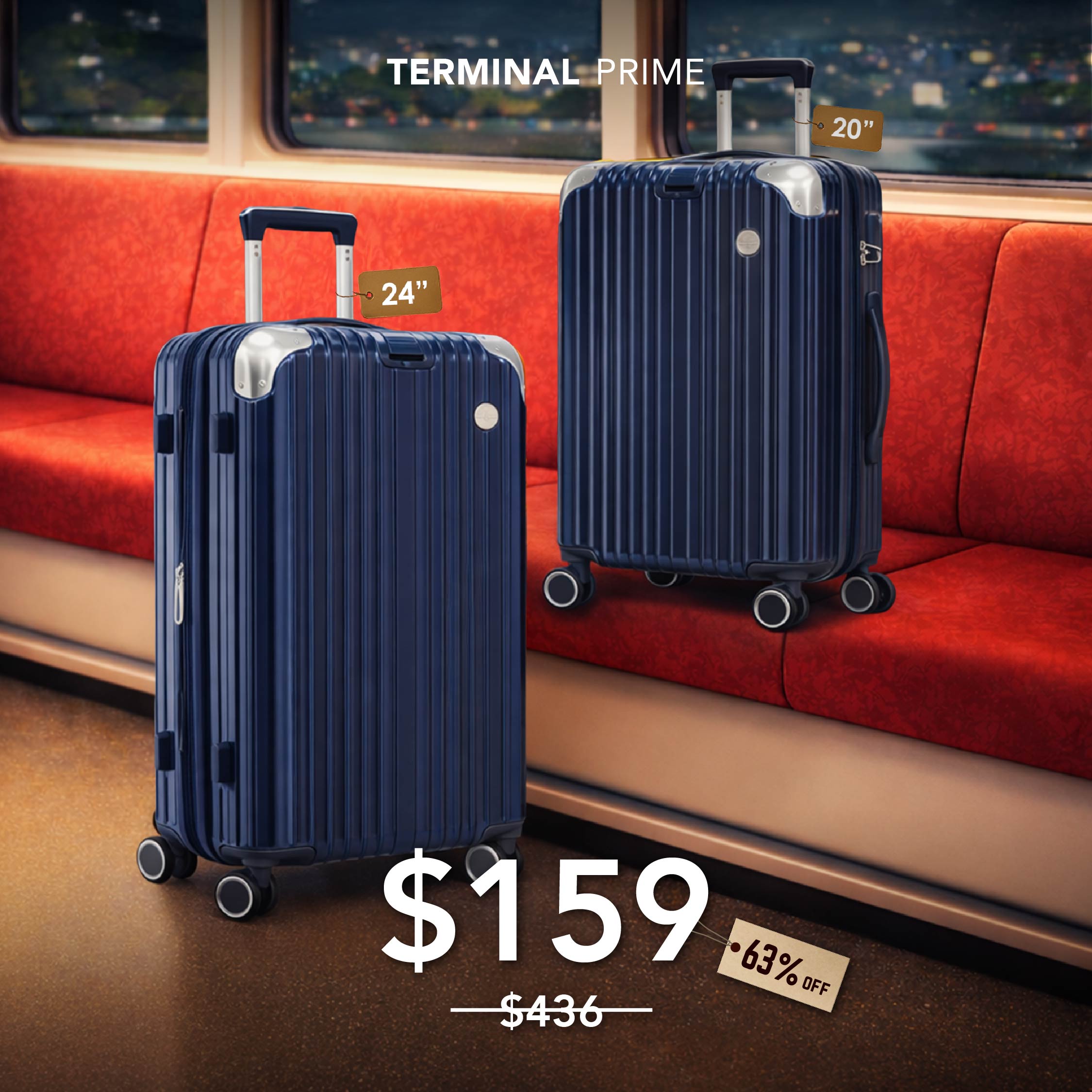 Terminal Prime redefines elegance with its durable ABS + PC shell and reinforced aluminum frame corners. Designed for versatility, it features a retractable strap for effortless bag handling and an expandable design with 25% extra capacity.