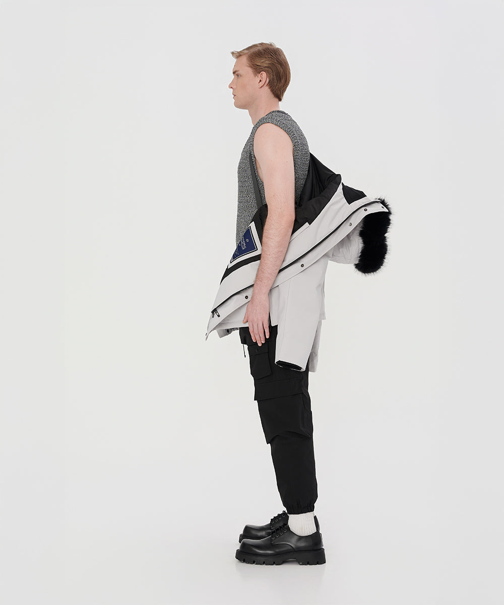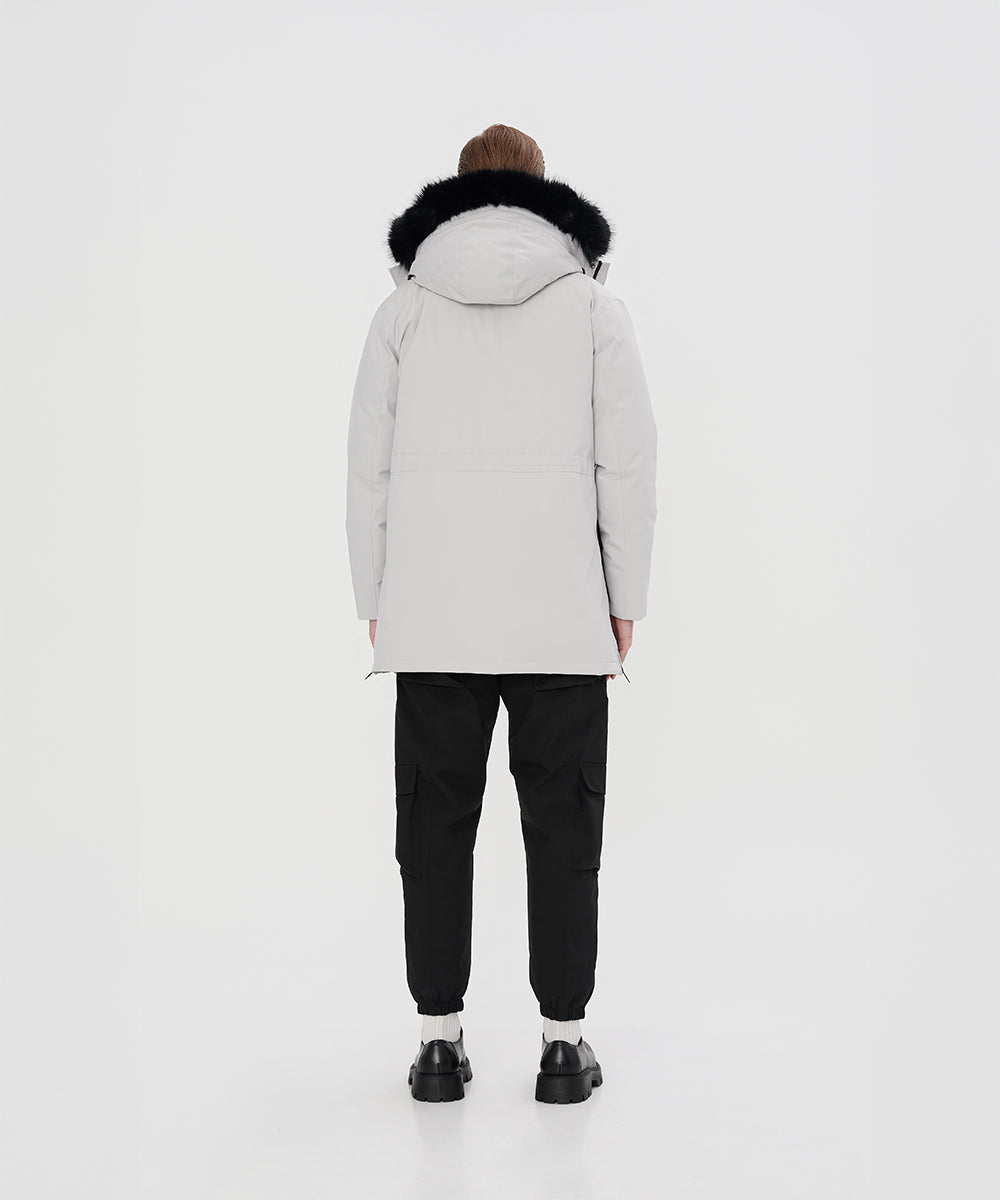MID-LENGTH DOWN JACKET WITH FUR-LINED HOOD