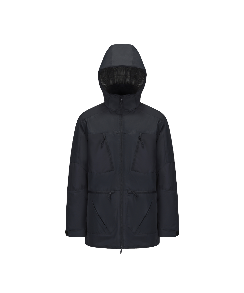 • Center front was equipped with a well-crafted wind flap, secured with snap button. A barrier that prevented cold wind and moisture from seeping through