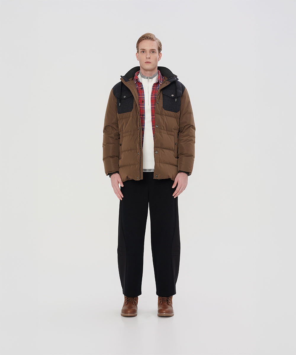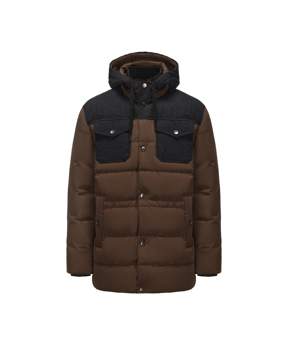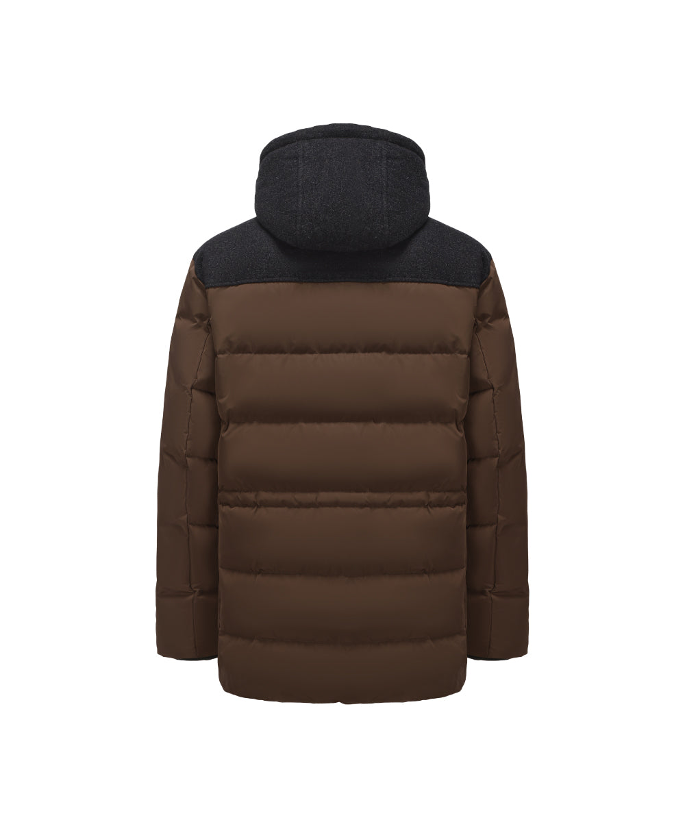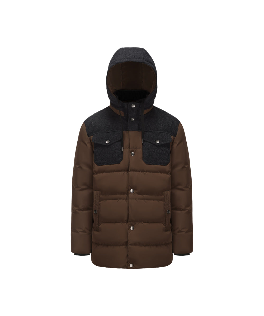 Featuring A Chunky Rib-Knit Collar And Wool-Blend Hood, This Down Jacket Combines Modern Texture With Premium Warmth In A Sleek, Versatile Design. Sophisticated Navy Blue Accented With A Concealed Ribbed Center-Front Closure, Delivering A Seamless And Elevated Finish. The Innovative 2-In-1 Layered Effect Look Is Expertly Constructed With Durable ,Flexible Twill Shell, Offering A Comfortable And Stylis Experience.