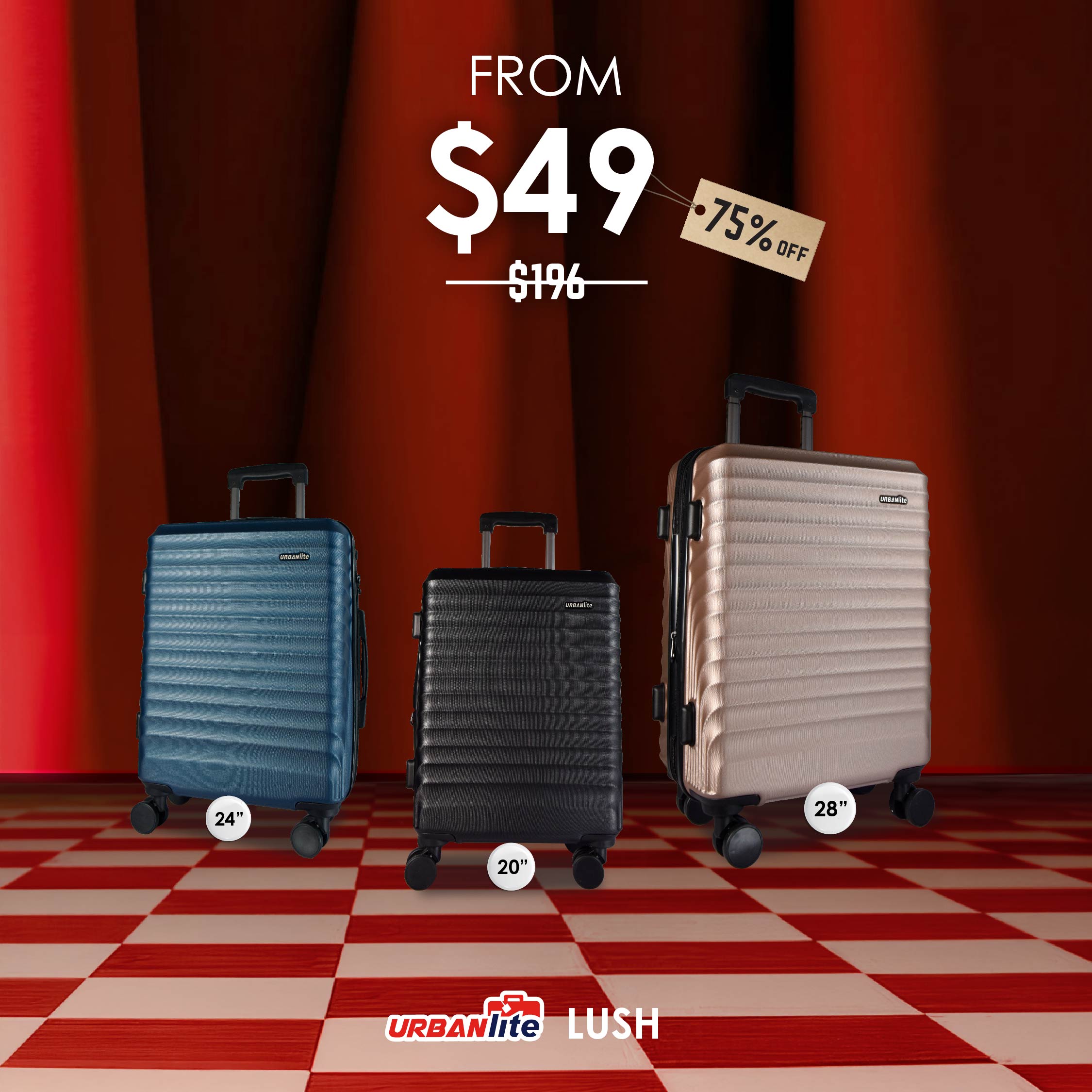 URBANlite Lush: Premium ABS luggage designed for seamless travel. With a built-in TSA lock, multi-directional spinner wheels, and expandable volume, it offers both security and convenience. Crafted for durability with embossed structure design and 8 sturdy wheels for smooth mobility.