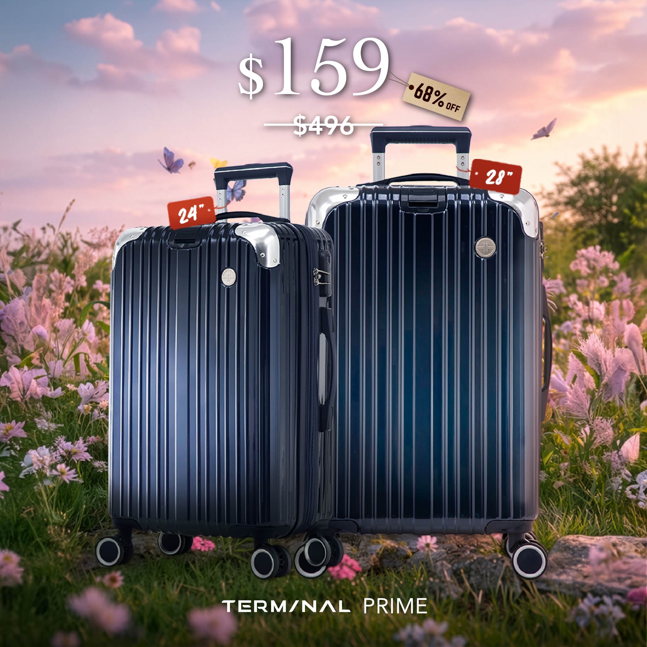 Terminal Prime redefines elegance with its durable ABS + PC shell and reinforced aluminum frame corners. Designed for versatility, it features a retractable strap for effortless bag handling and an expandable design with 25% extra capacity.