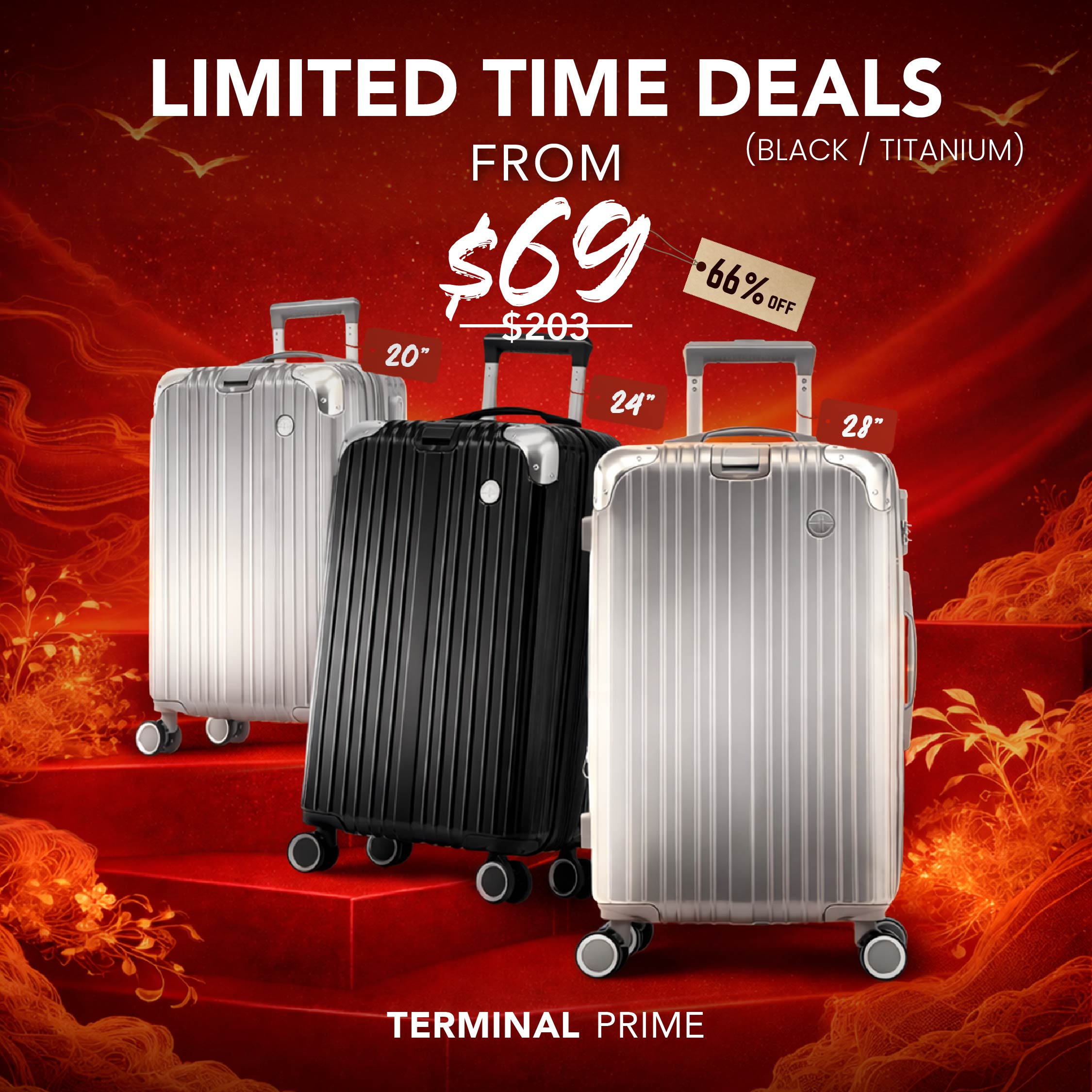 Terminal Prime redefines elegance with its durable ABS + PC shell and reinforced aluminum frame corners. Designed for versatility, it features a retractable strap for effortless bag handling and an expandable design with 25% extra capacity.