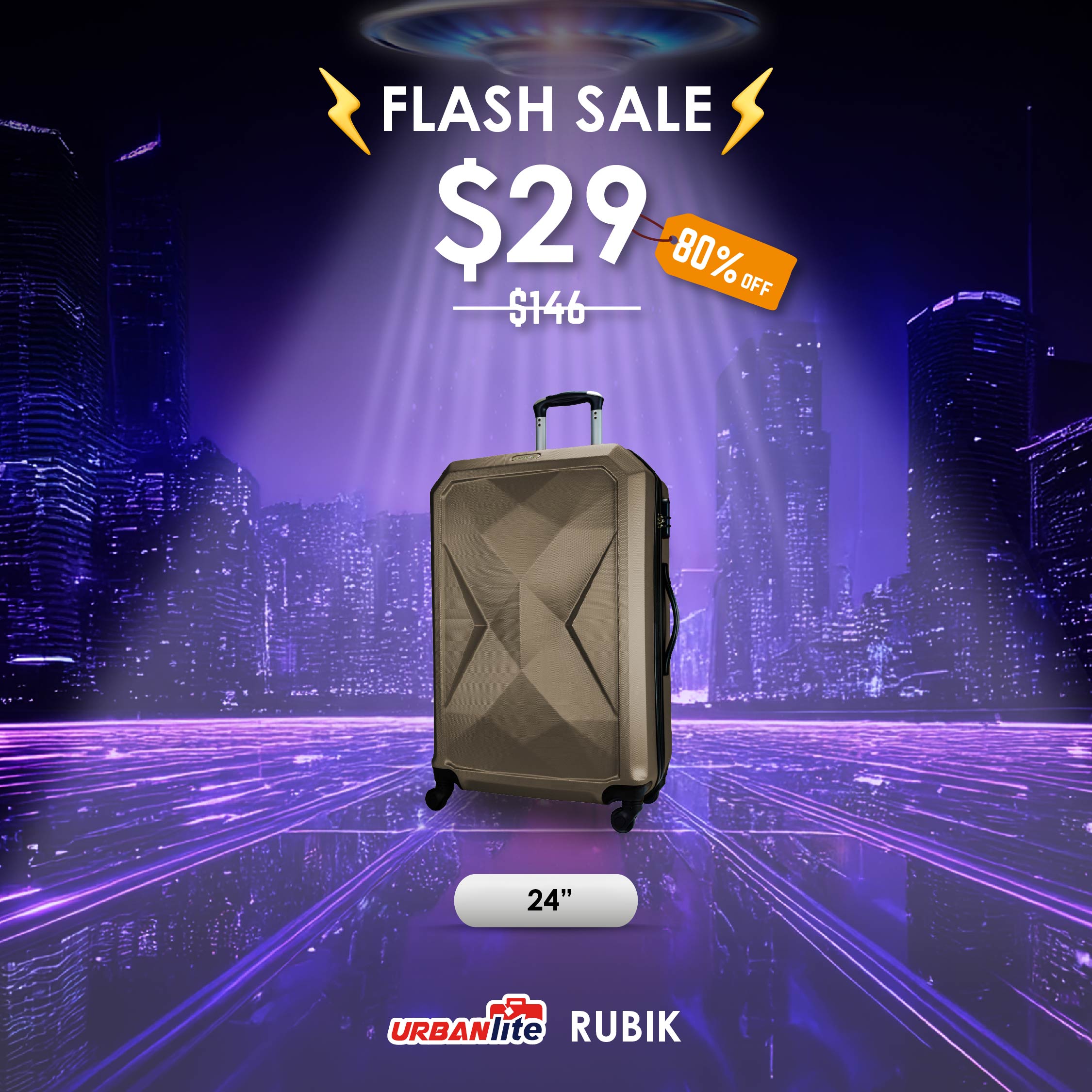 10th Nov 8PM-10PM : Shocking Sale $29 URBANlite Rubik 24" | 4-Wheel Spinner | Anti-Scratch | Hard Case Luggage