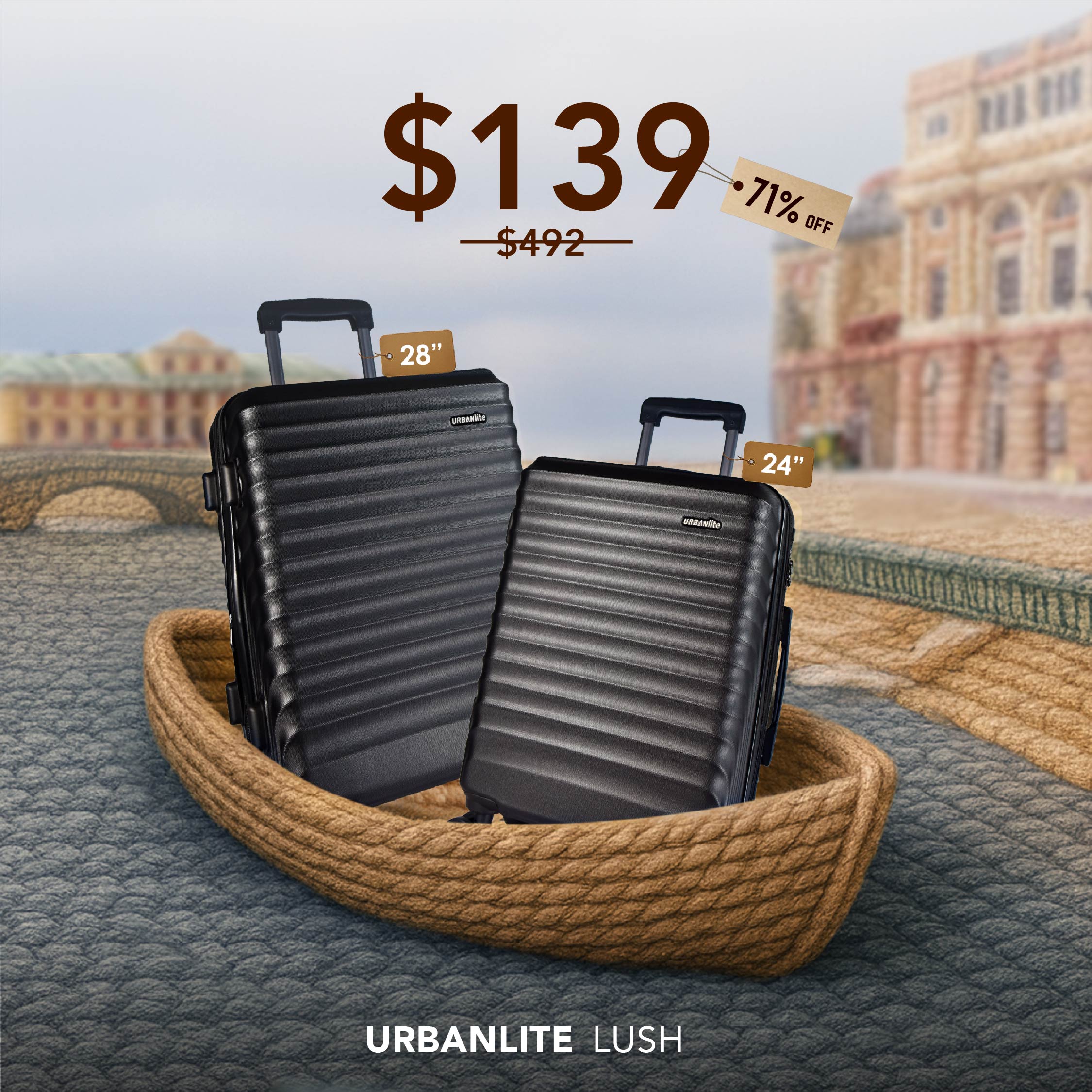 URBANlite Lush: Premium ABS luggage designed for seamless travel. With a built-in TSA lock, multi-directional spinner wheels, and expandable volume, it offers both security and convenience. Crafted for durability with embossed structure design and 8 sturdy wheels for smooth mobility.