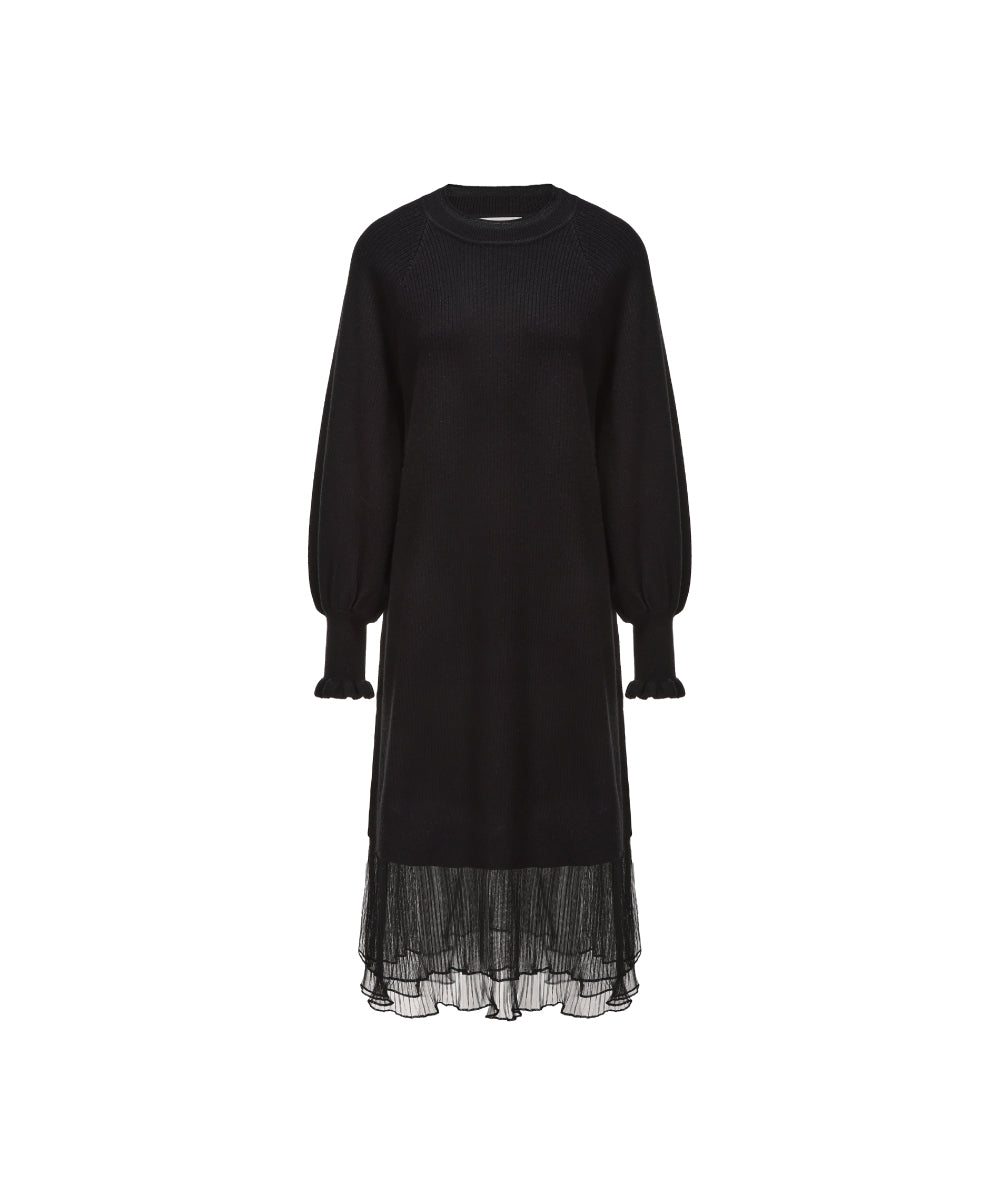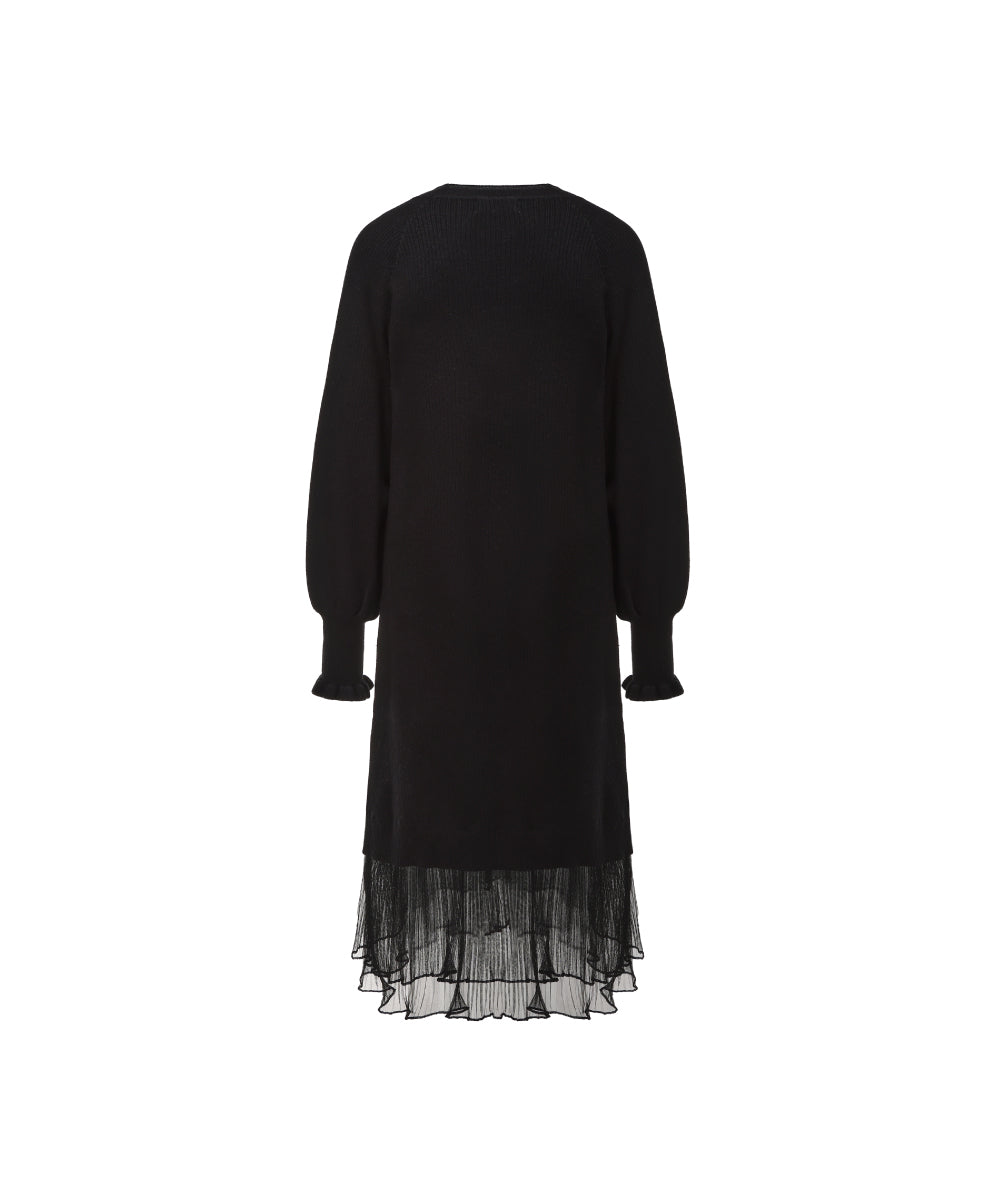 Elegant black knitted chiffon dress combining cozy