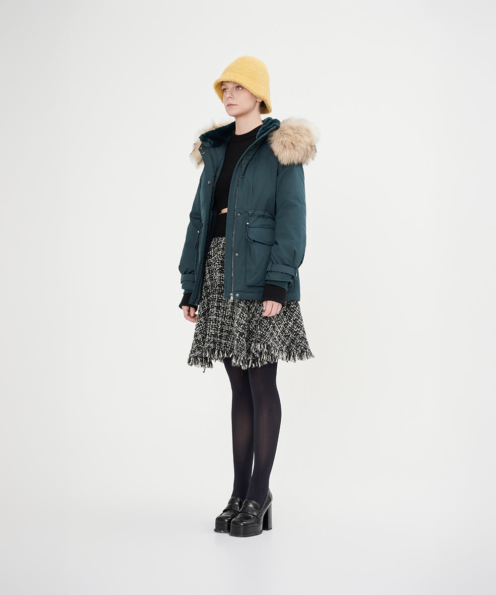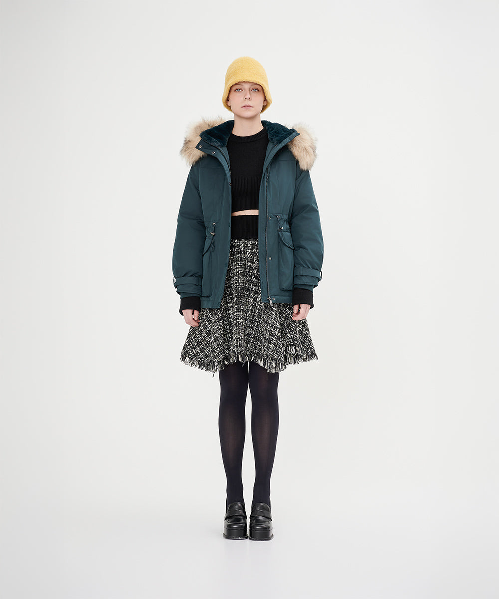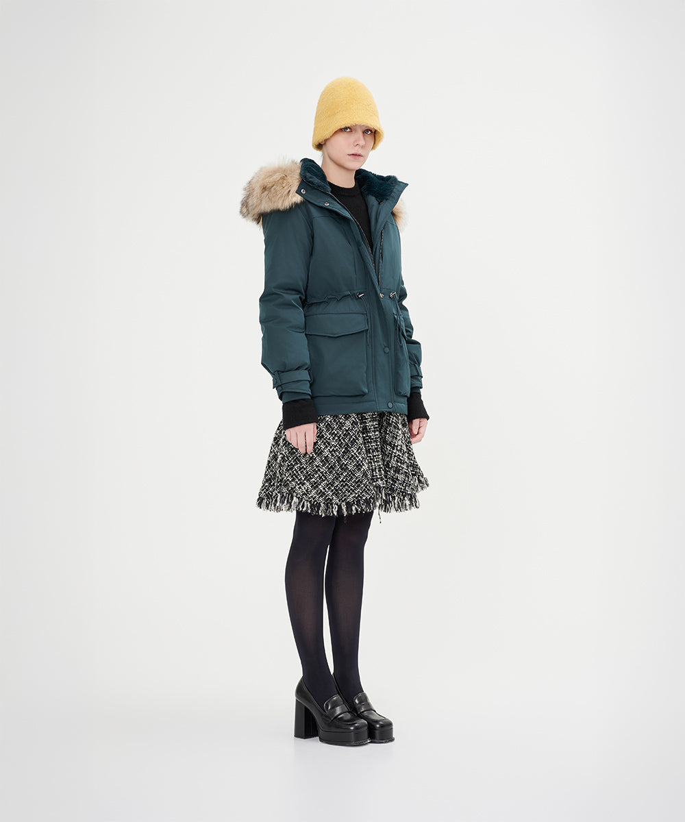 Luxurious Faux Fur Hood Down Jacket