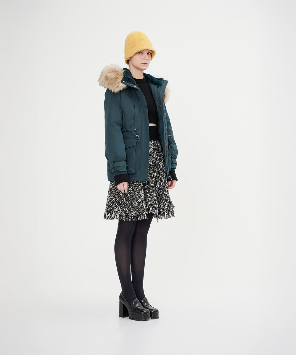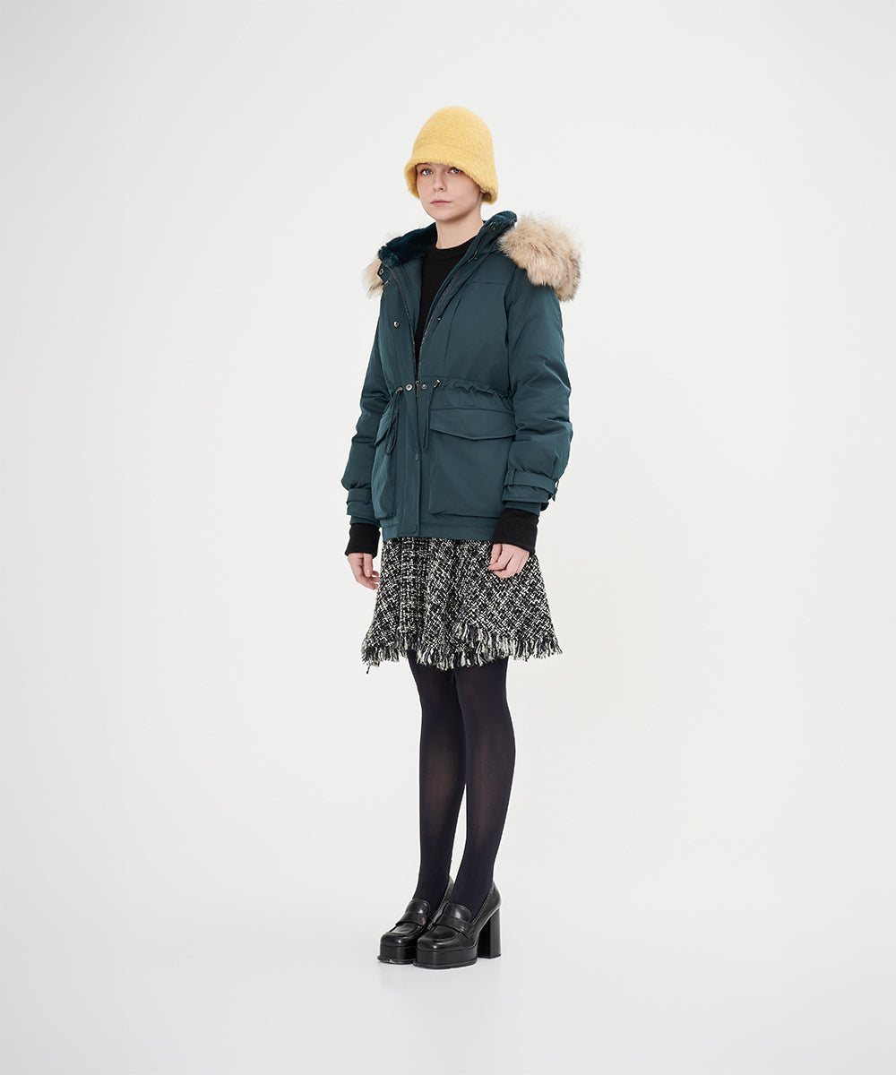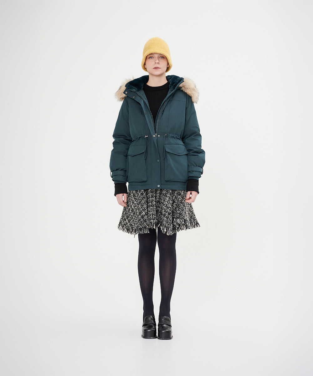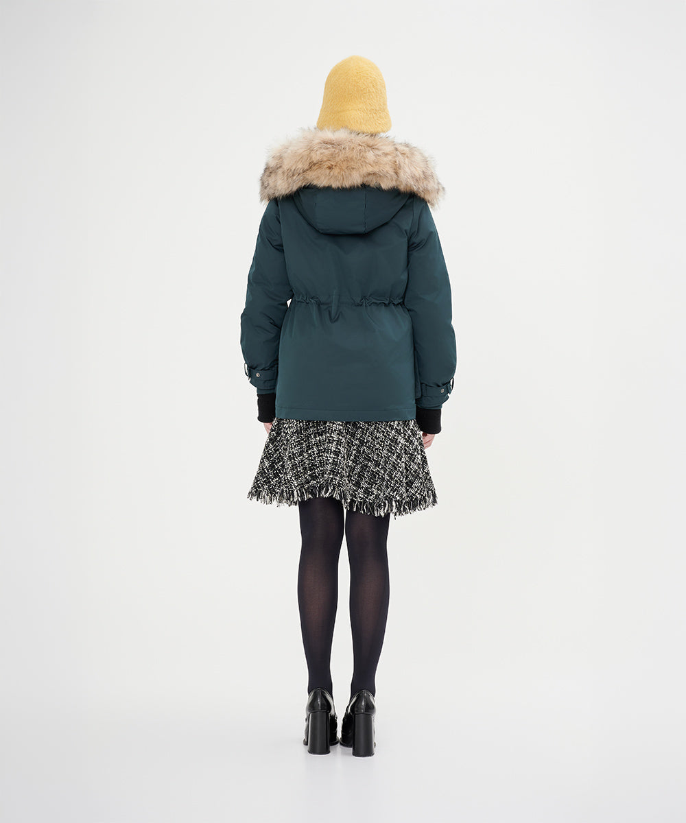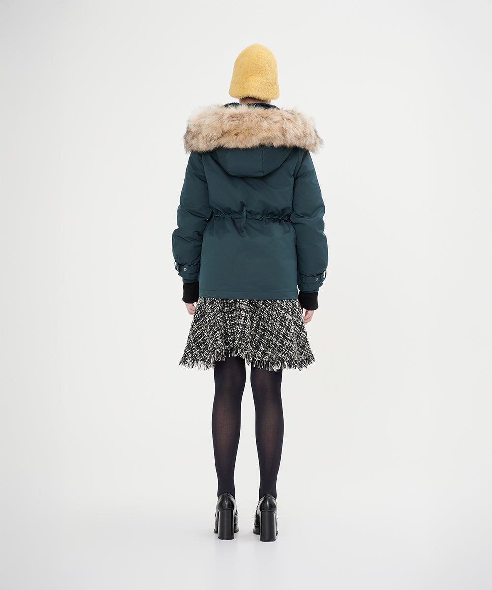 • Detachable fur trim that adds a touch of luxury and flexibility