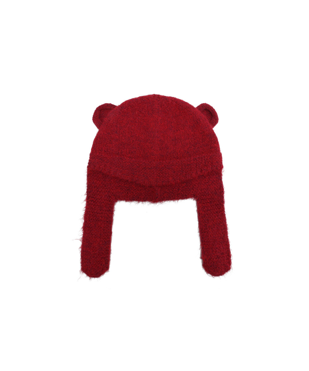Cozy beanie accented with cute ear shapes on top and elongated earflaps for added charm and coverage.