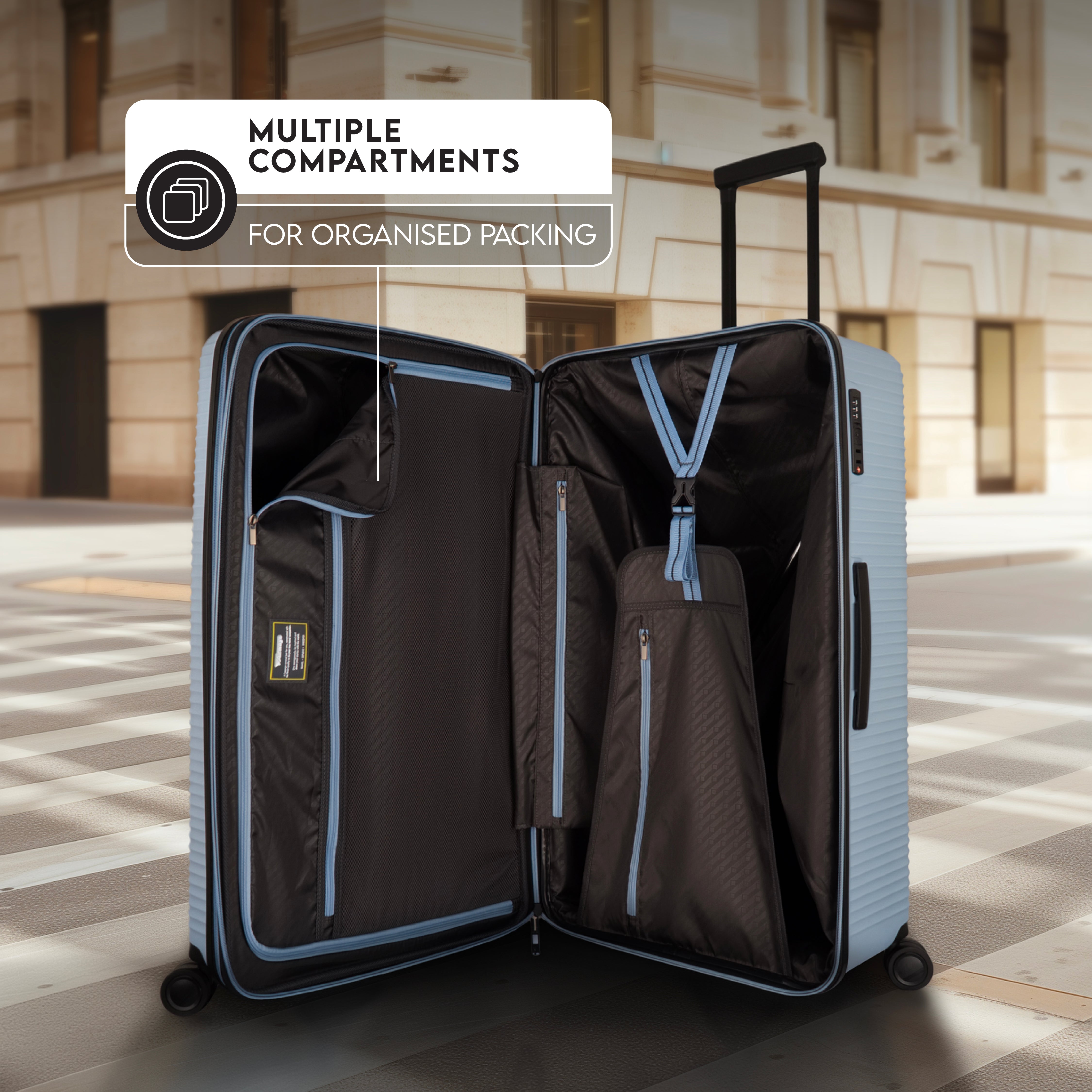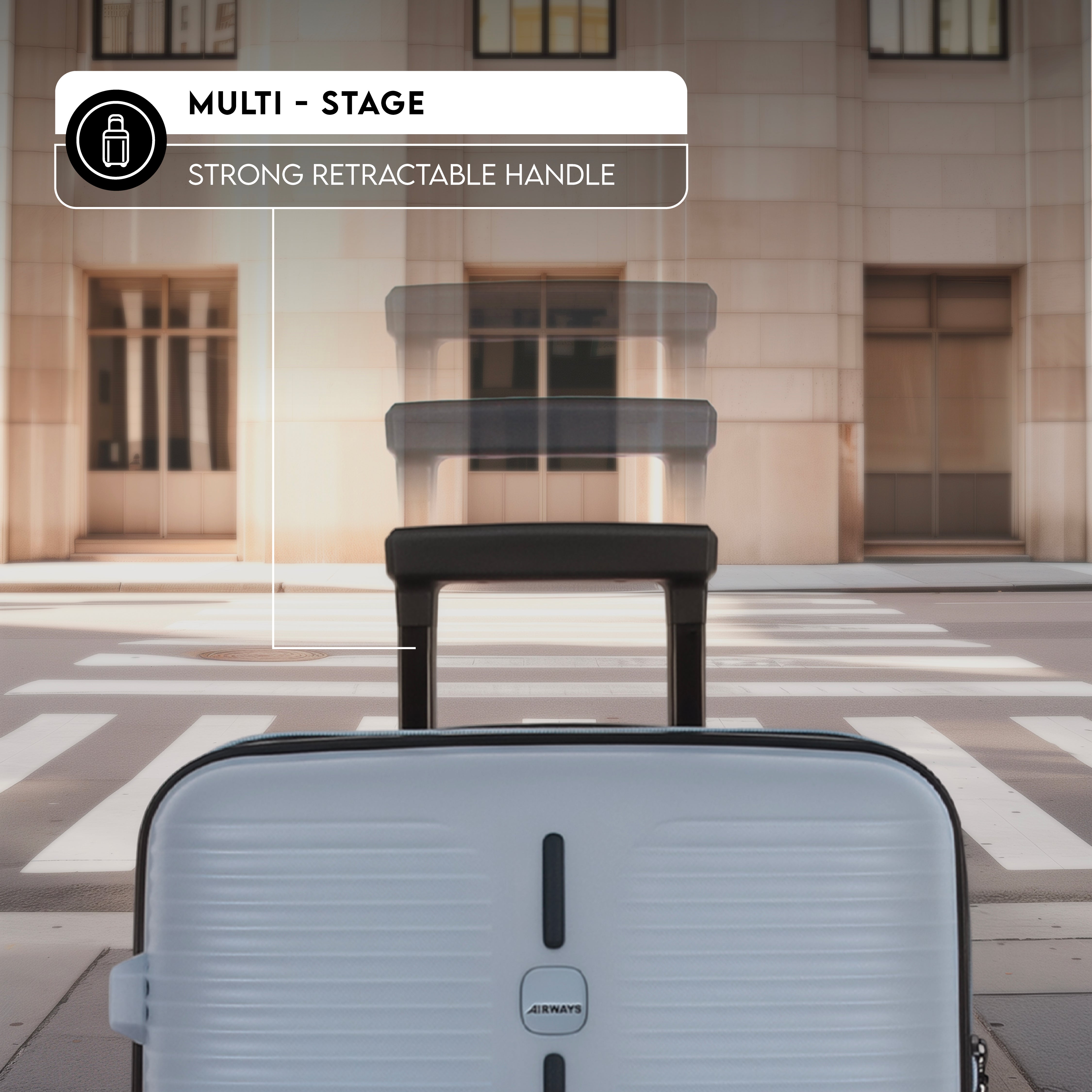 ● Internal push-button telescopic handle with multi-stage locking heights for easy